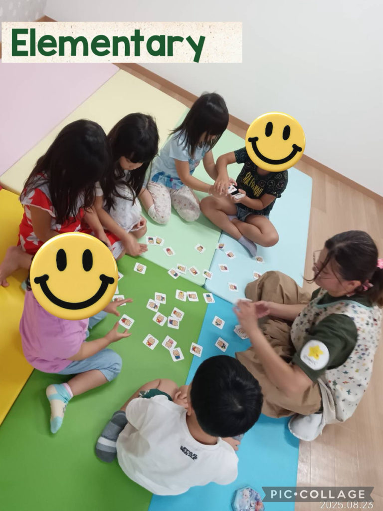 子ども達が自分で曜日や学校で習う教科の単語を使った文章作りにチャレンジしました。 写真を使って記憶ゲームもしました。”どこにあった?”, “いくつ覚えられたかな?”と言って盛り上がりましたよ!