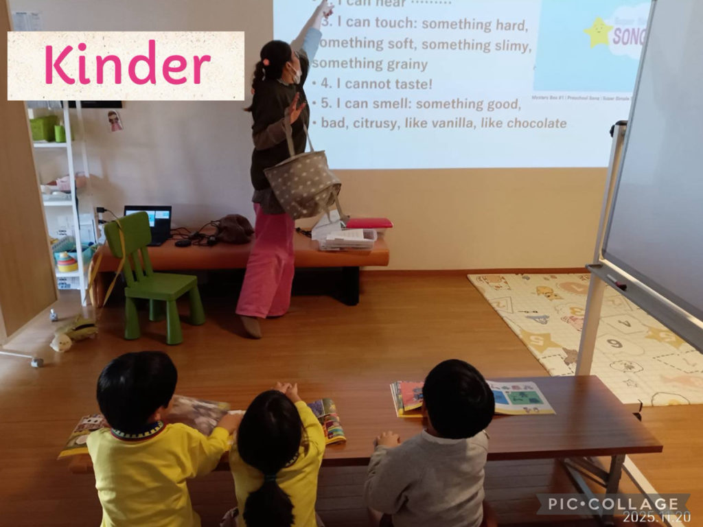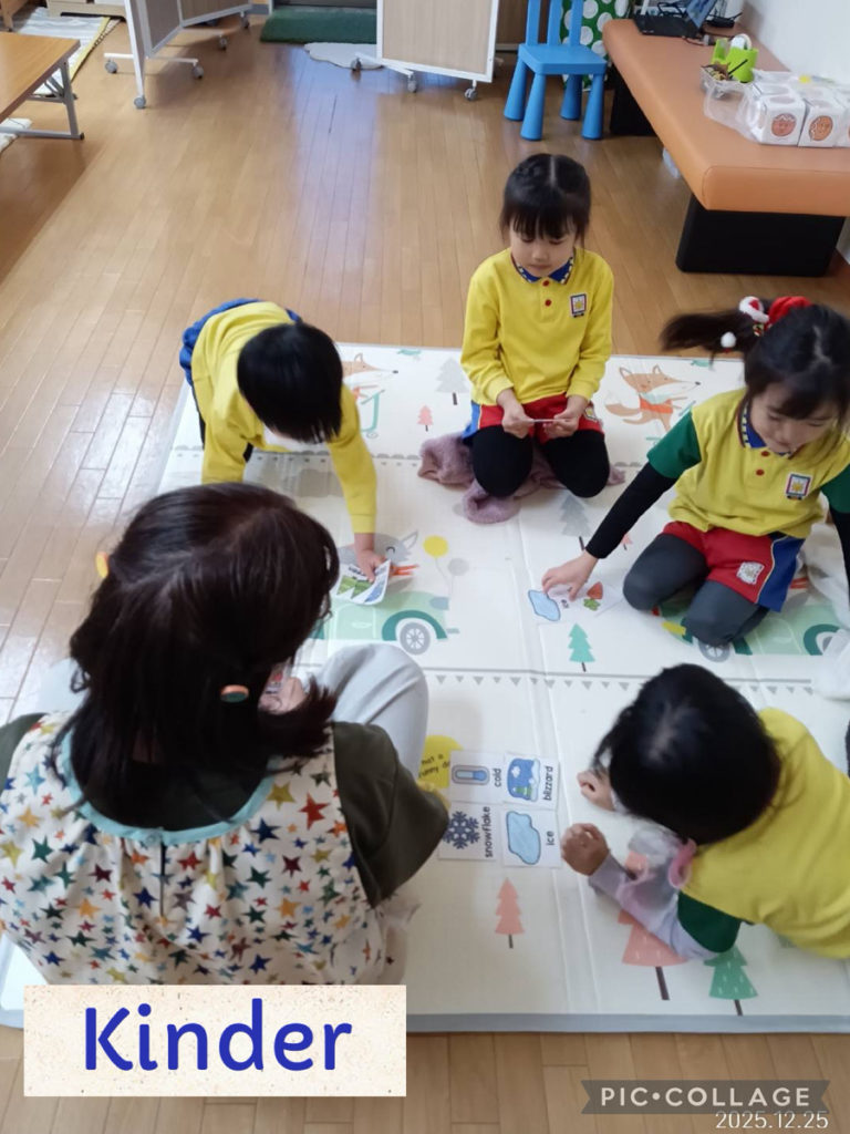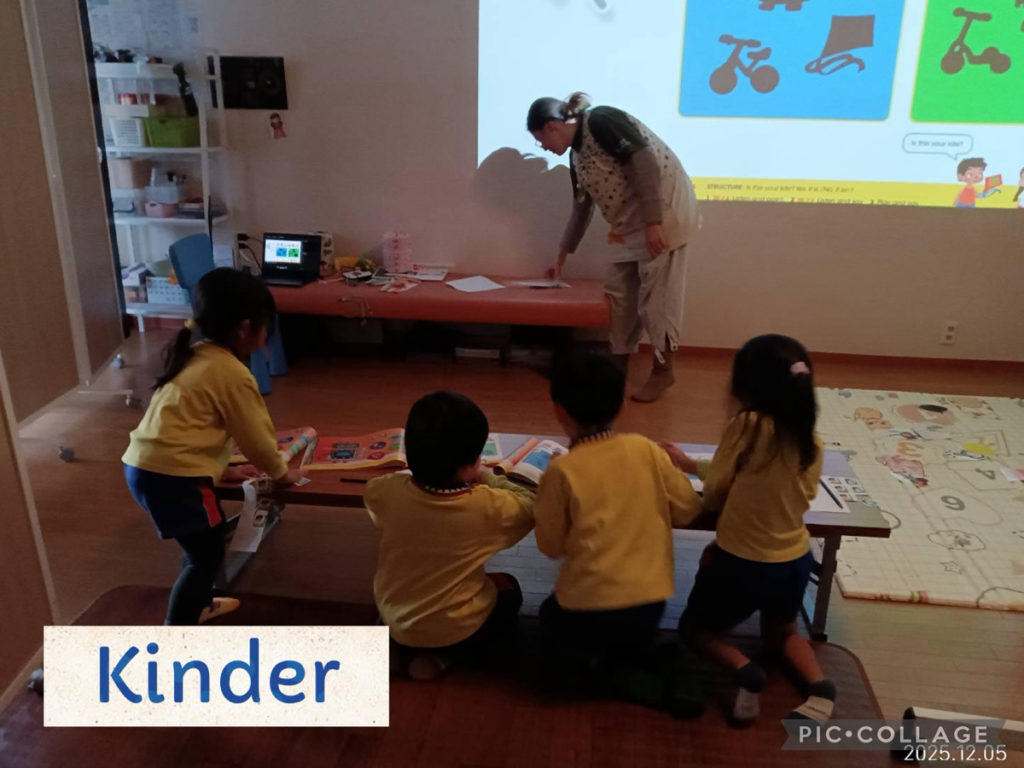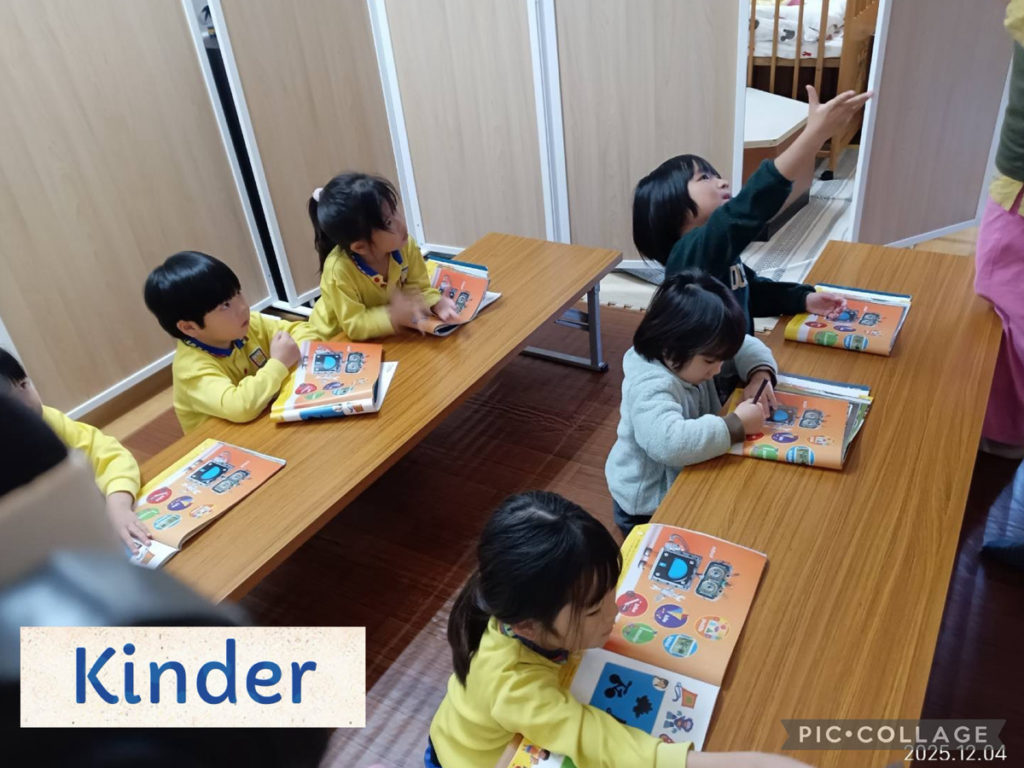 ミステリーボックスにも挑戦!「中身は何かな?」とワクワクしながらみんなで予想しました!そのあとはフォニックスの時間。最初の音がしっかりわかるようになってきて、どんどん成長しています