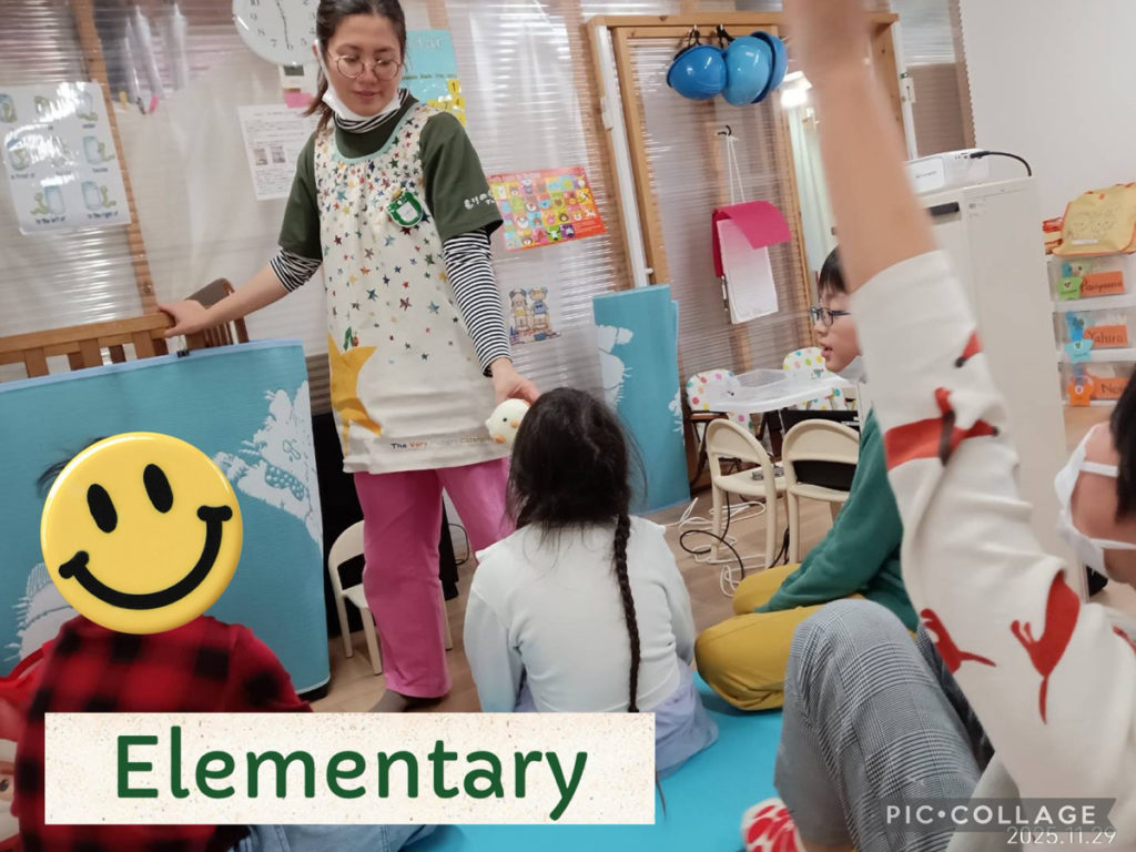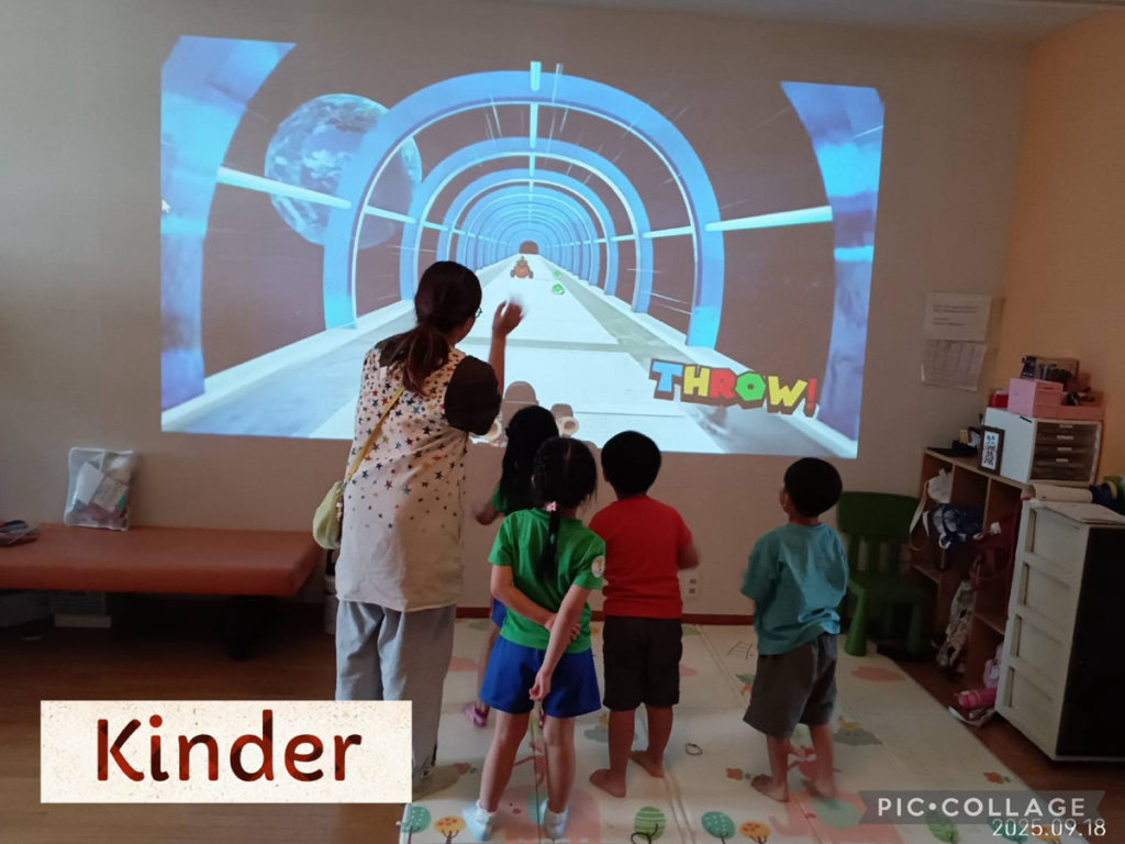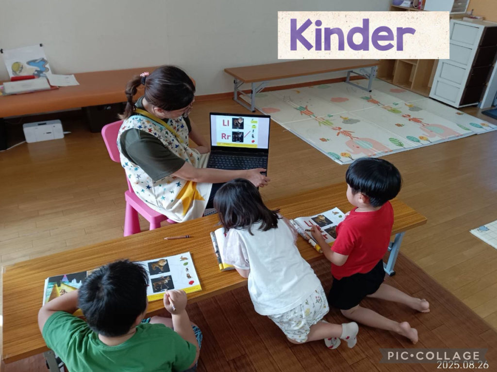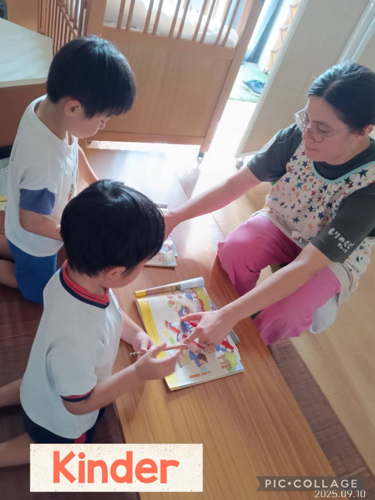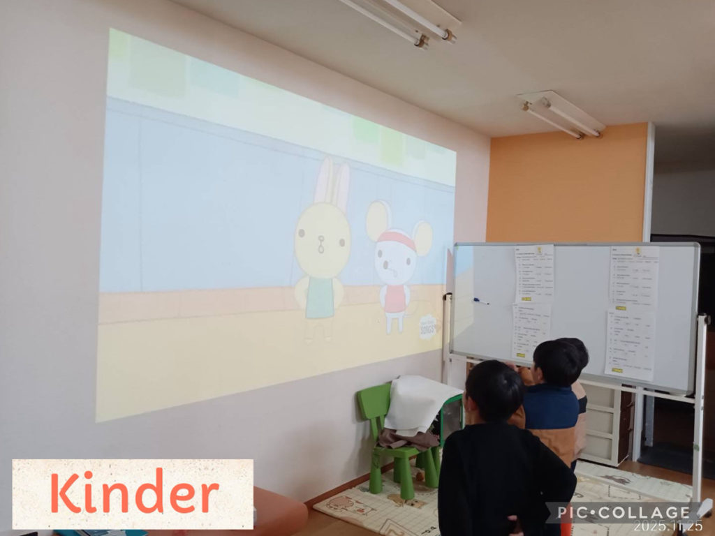 ミステリーボックスにも挑戦!「中身は何かな?」とワクワクしながらみんなで予想しました!そのあとはフォニックスの時間。最初の音がしっかりわかるようになってきて、どんどん成長しています