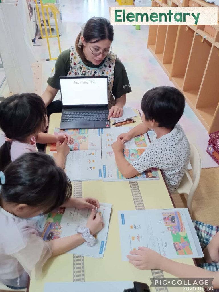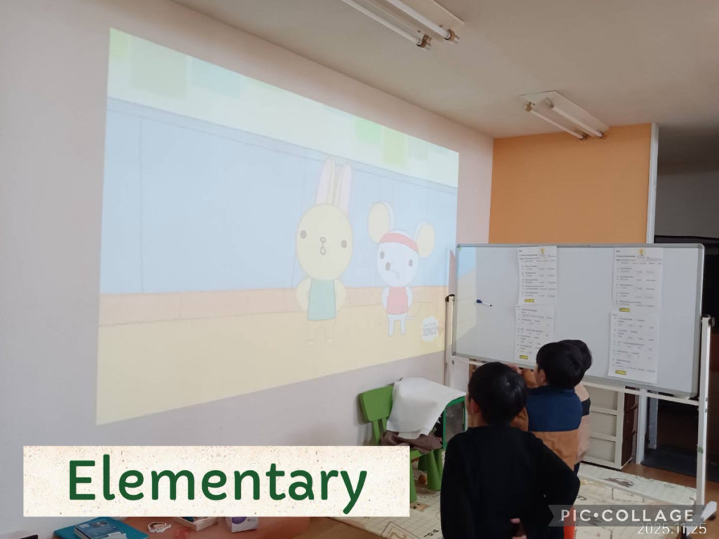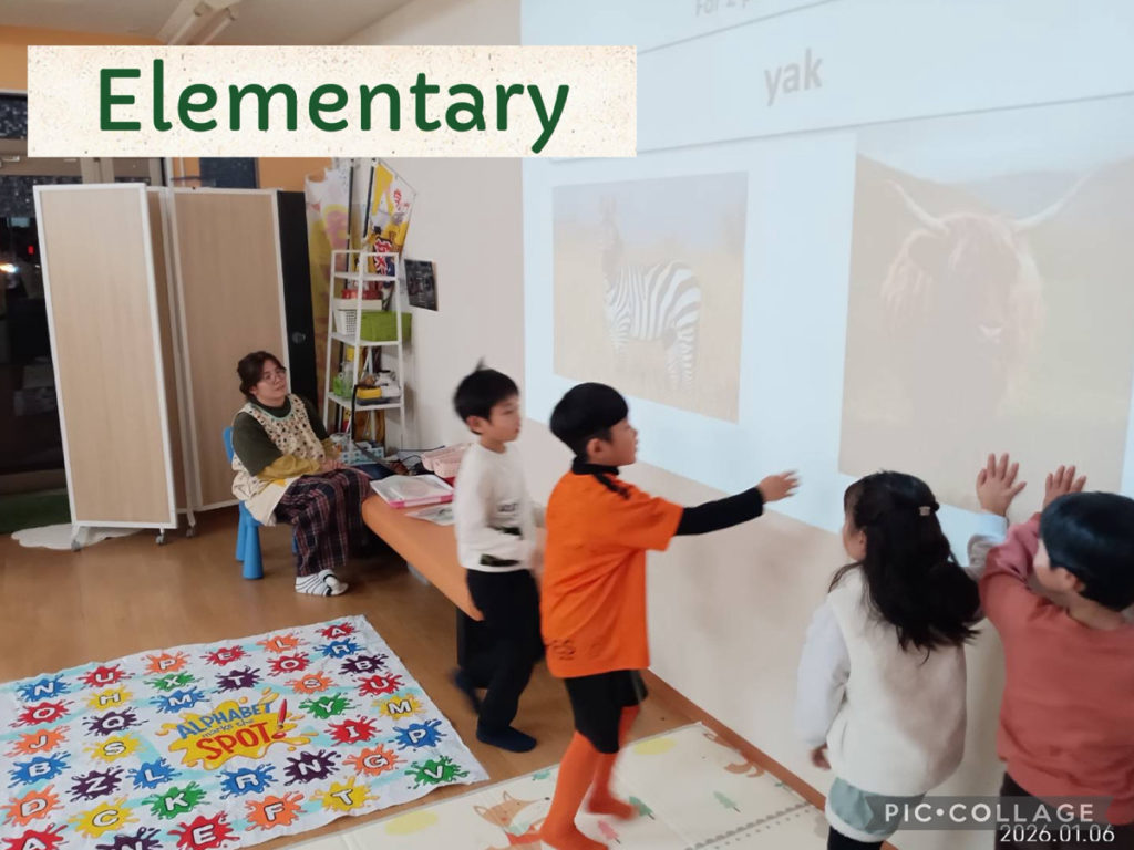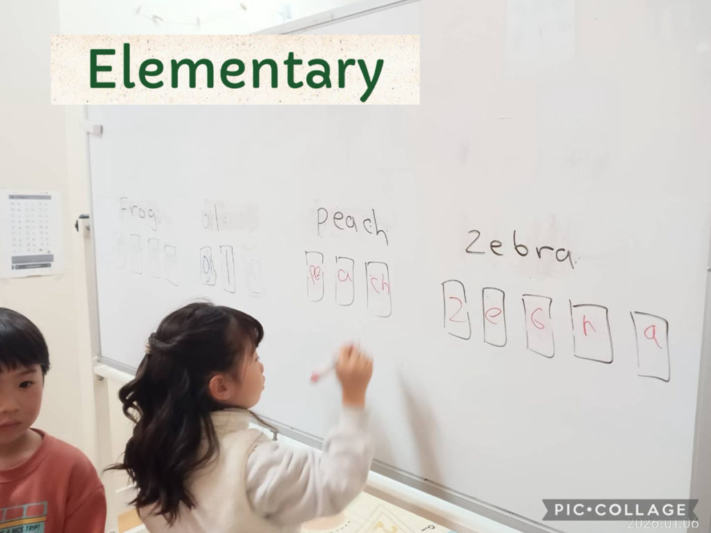 小学生 : パワーポイントを使って、これはどんな場所かな?のゲームをし、パワーポイントの中にある自分の写真を見つけて大喜びでした。 フォニックスのパズルを使って復習もしました。