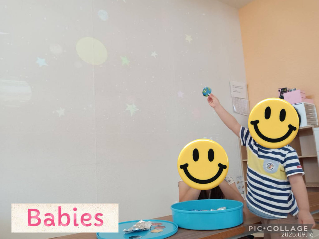 歌を歌いながら砂の上で惑星🪐を並べて感覚遊びを楽しみました😊