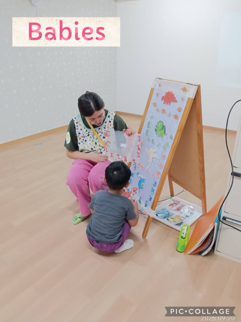 歌を歌いながらバス🚌と色🎨を組み合わせたアクティビティーをしました♪寝る前のルーティンについても学びました