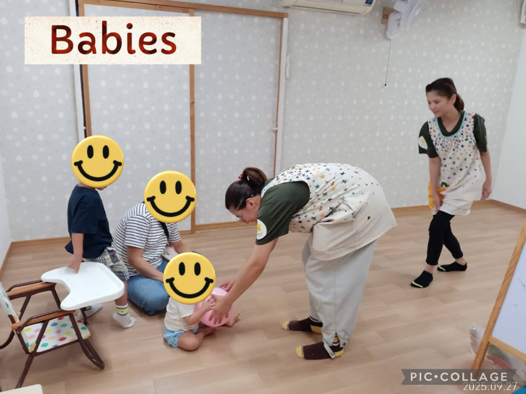 赤ちゃんの頃の写真を見せるのはちょっぴり恥ずかしかしそうにしていたけれど…先生たちの赤ちゃん写真には大盛り上がり😆✨
