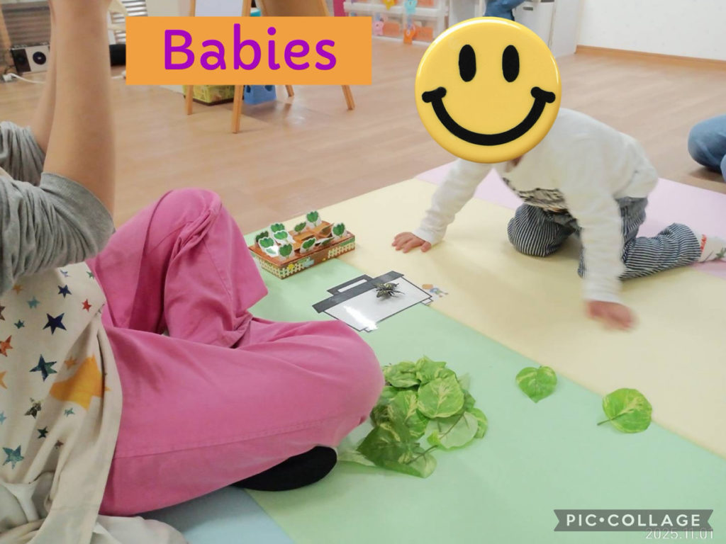 虫をテーマにしたアクティビティをしました🐞🐛🕷️子どもたちは、葉っぱ🍃🍂の中から虫を探したり、触ったりして楽しんでいました😊