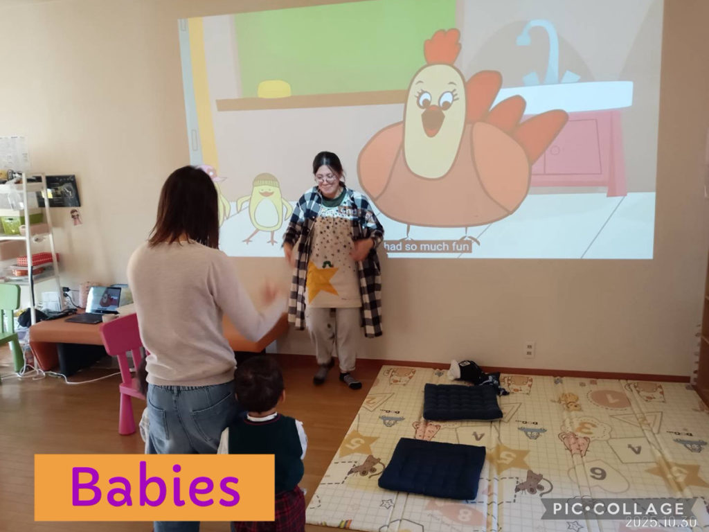 今回も歌や絵本を使って身体のパーツの復習をしました。 他にも自然の歌を歌いハチの巣やカエル、クモも出てきて、子供達も喜んでいました。