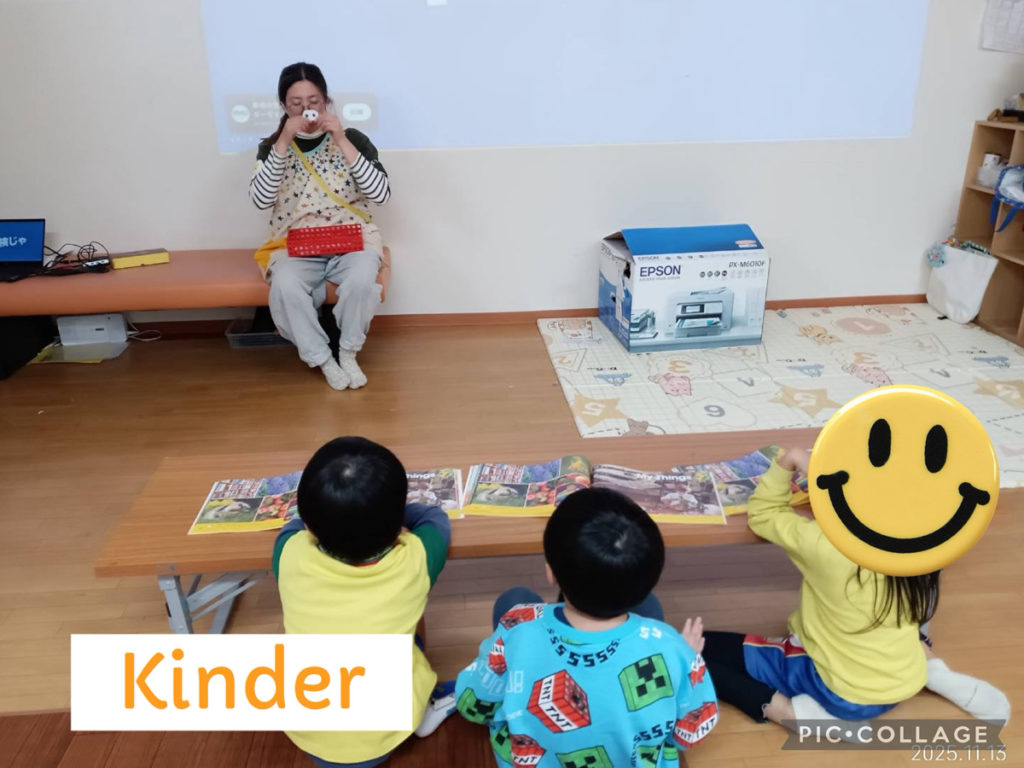 “BINGO”“Hickory Dickory dock”“Old Mcdonald Had a farm ”“Itsy bitsy spider”などなど、たくさんの歌を聴いて楽しみました!動物たちの鳴き声も聞きました♪