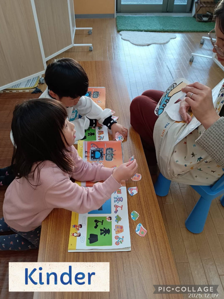 その間お友だちはどの場所にするか教えてあげていました。3語の言葉のパズルもしました!