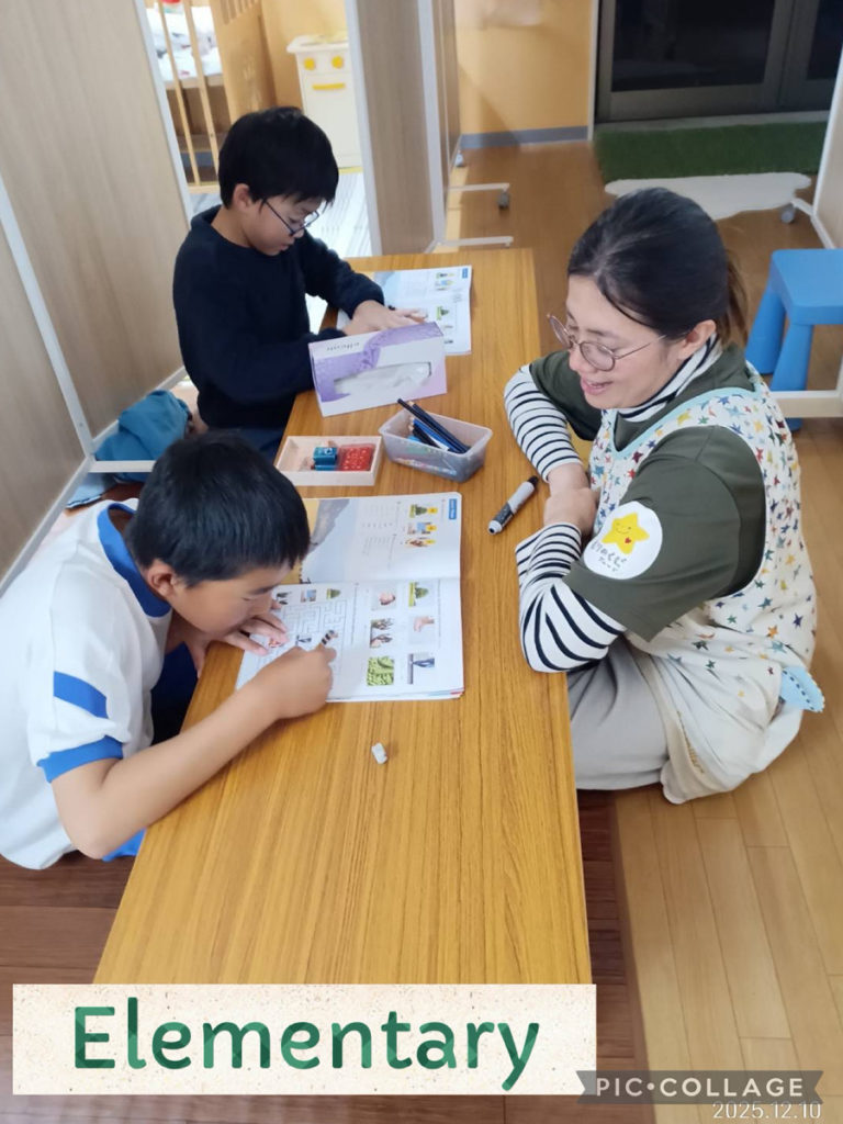 その後高学年と文章を復習し、低学年とは母音の音を復習しました!